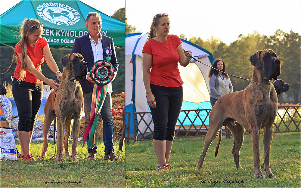 Zwycięzca Europy 2021 + BOB Zwycięzca Europy 2019 + BOS Zwycięzca EuDDC 2022 + BOS Zwycięzca Klubu 2022 + BOB + II-BIS Zwycięzca Klubu Czech 2021 + BOB + I-BIS Zwycięzca Klubu 2021 + BOB + II-BIS Zwycięzca Klubu Słowacji 2020 + BOB + I-BIS Zwycięzca Klubu Austrii 2019 + BAF + I-BIS Zwycięzca Klubu 2019 + BOB + I-BIS Zwycięzca Klubu Węgier (MNDK) 2021 + BOS + III-BIS BOS Zwycięzca Wystawy Spec. 2021 + BOB + II-BIS Zwycięzca Wystawy Spec. Sk 2020 + BOB + I-BIS Zwycięzca Wystawy Spec. 2020 + II-BIS BOS Zwycięzca Wystawy Klubu Czech 2021 + BOB Zwycięzca Klubu Węgier 2021 Zwycięzca Klubu 2020 Zwycięzca Polski 2019 + BOS Zwycięzca Wystawy Spec. 2019 Zwycięzca Polski 2018 + BOB Młodzieżowy Zwycięzca Klubu 2018 + BOS + I-BIS Junior I-BIS Klasy Honorowej - Klub Doga Niemieckiego 2023 GRAND PRIX 2019 - Ranking Klubu Doga Niemieckiego InterChampion, Champion Polski, Champion Czech, Champion Węgier Grand Champion Polski, 2x Zwycięzca Pragi 2019 Młodzieżowy Champion Polski, Młodzieżowy Zwycięzca Beneluxu 2018 MAJERANEK |